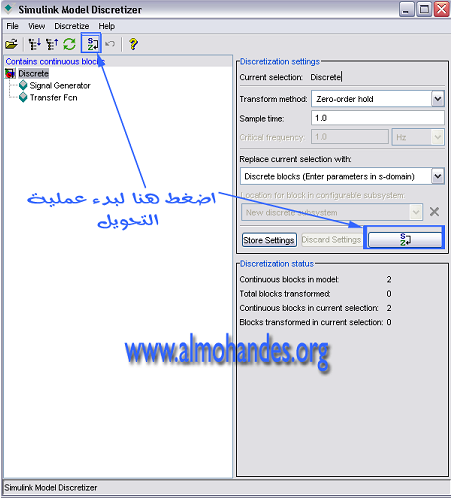ويمكن ايضا فتح Model Discretizer عن طريق سطر اوامر الماتلاب من خلال الامر الاتى